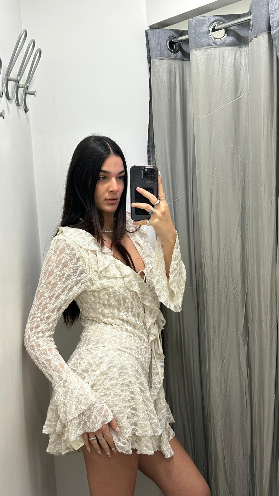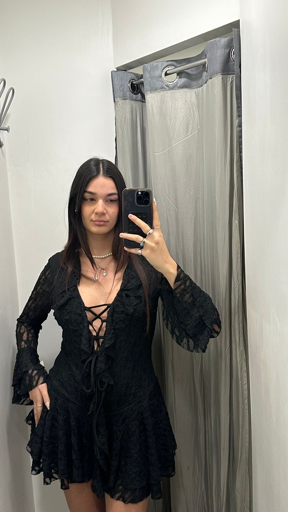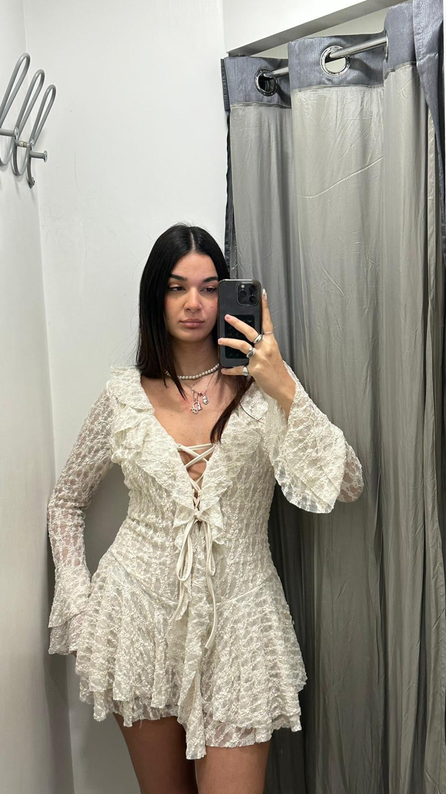 Abito corto in pizzo, con culotte pantaloncino. Taglia unica , ottima vestibilità