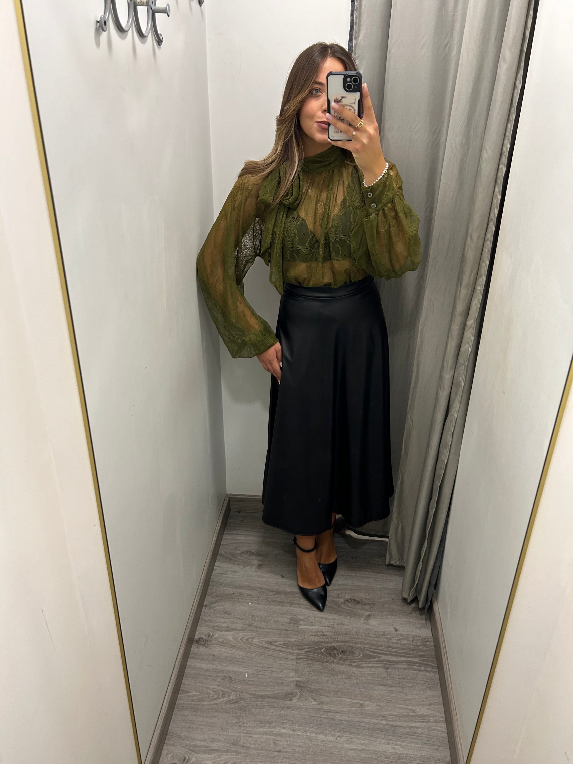 Camicia donna in pizzo con caratteristico fiocco alla gola. Taglia unica veste fino alla tg50