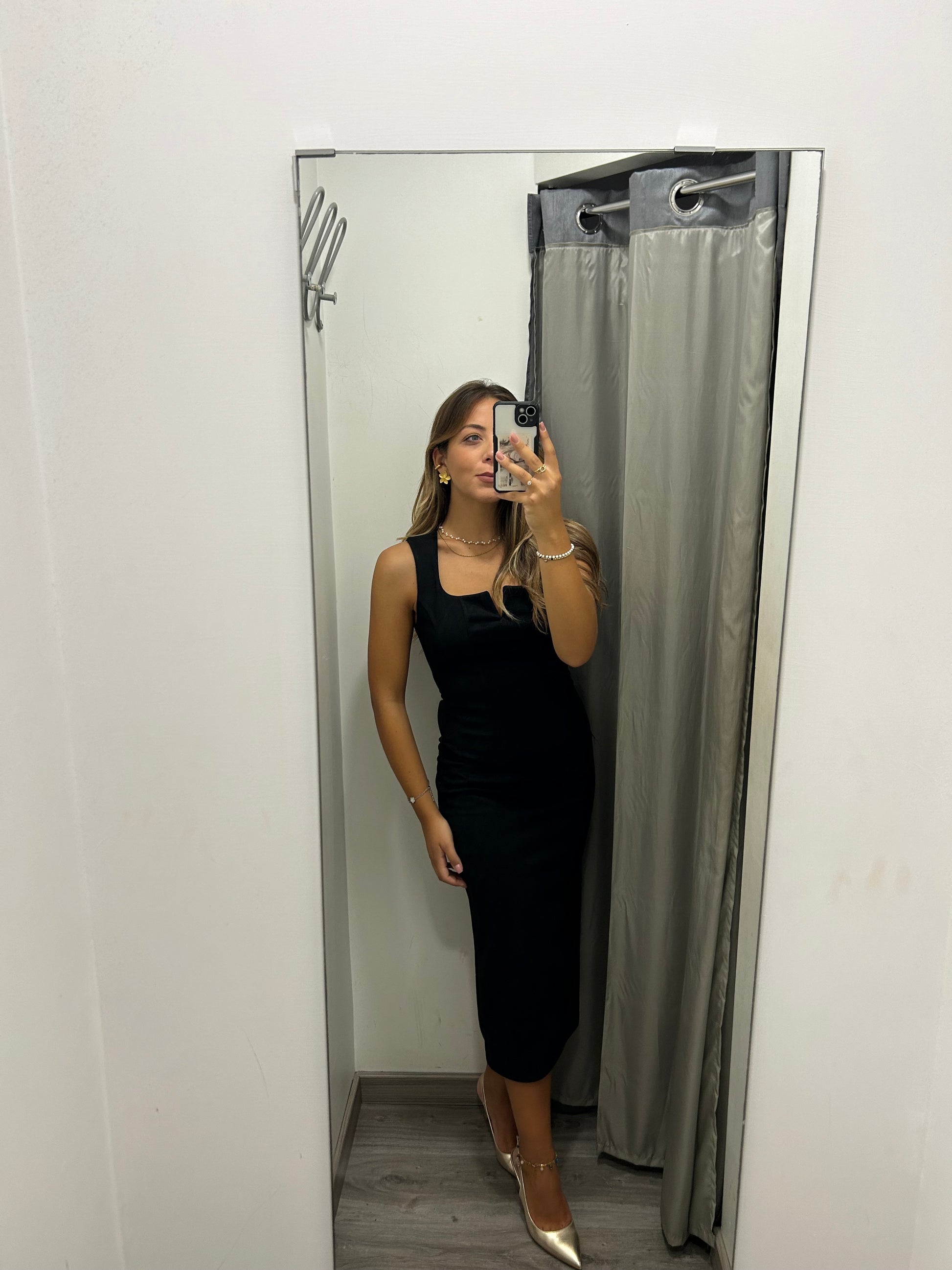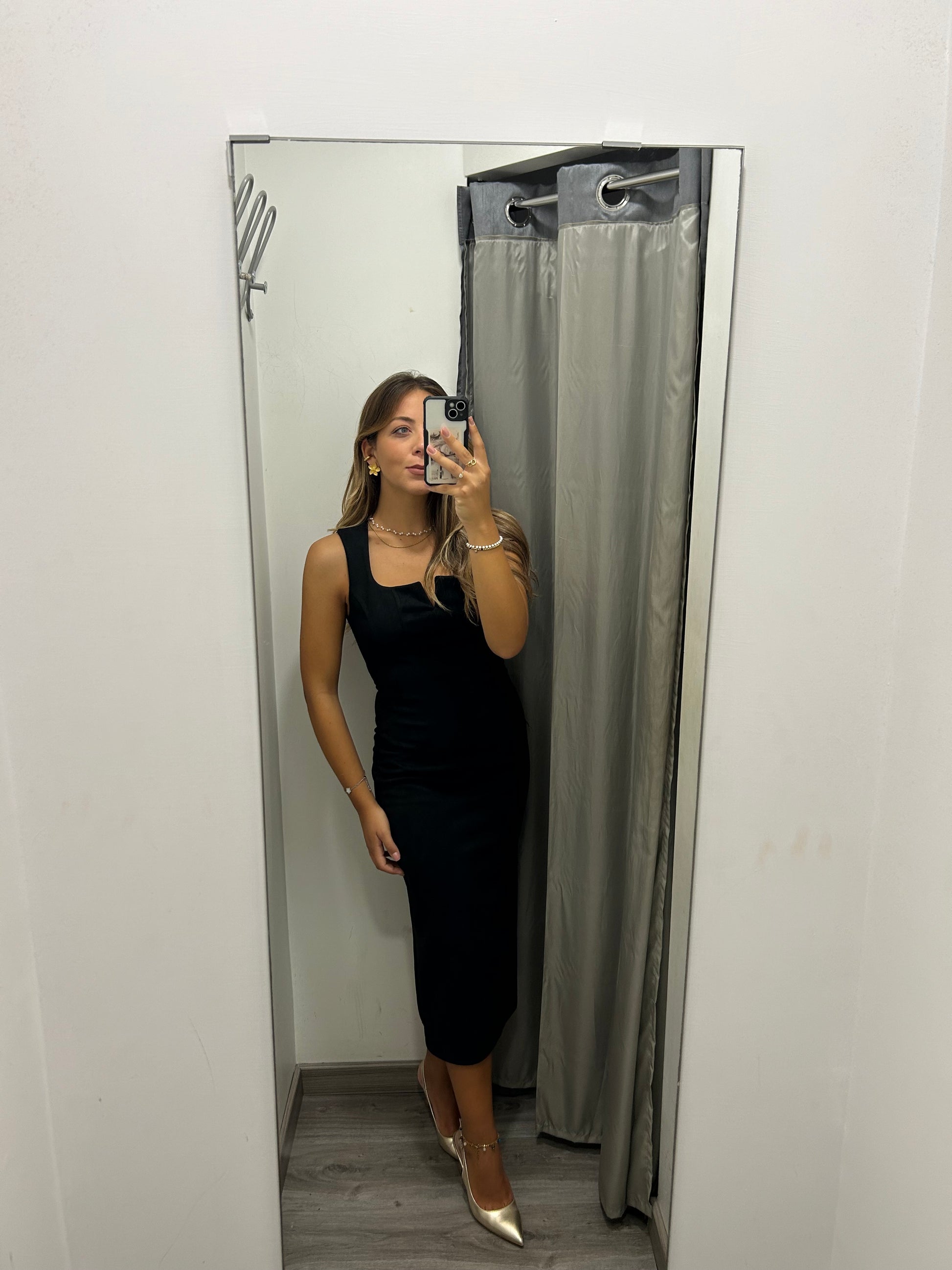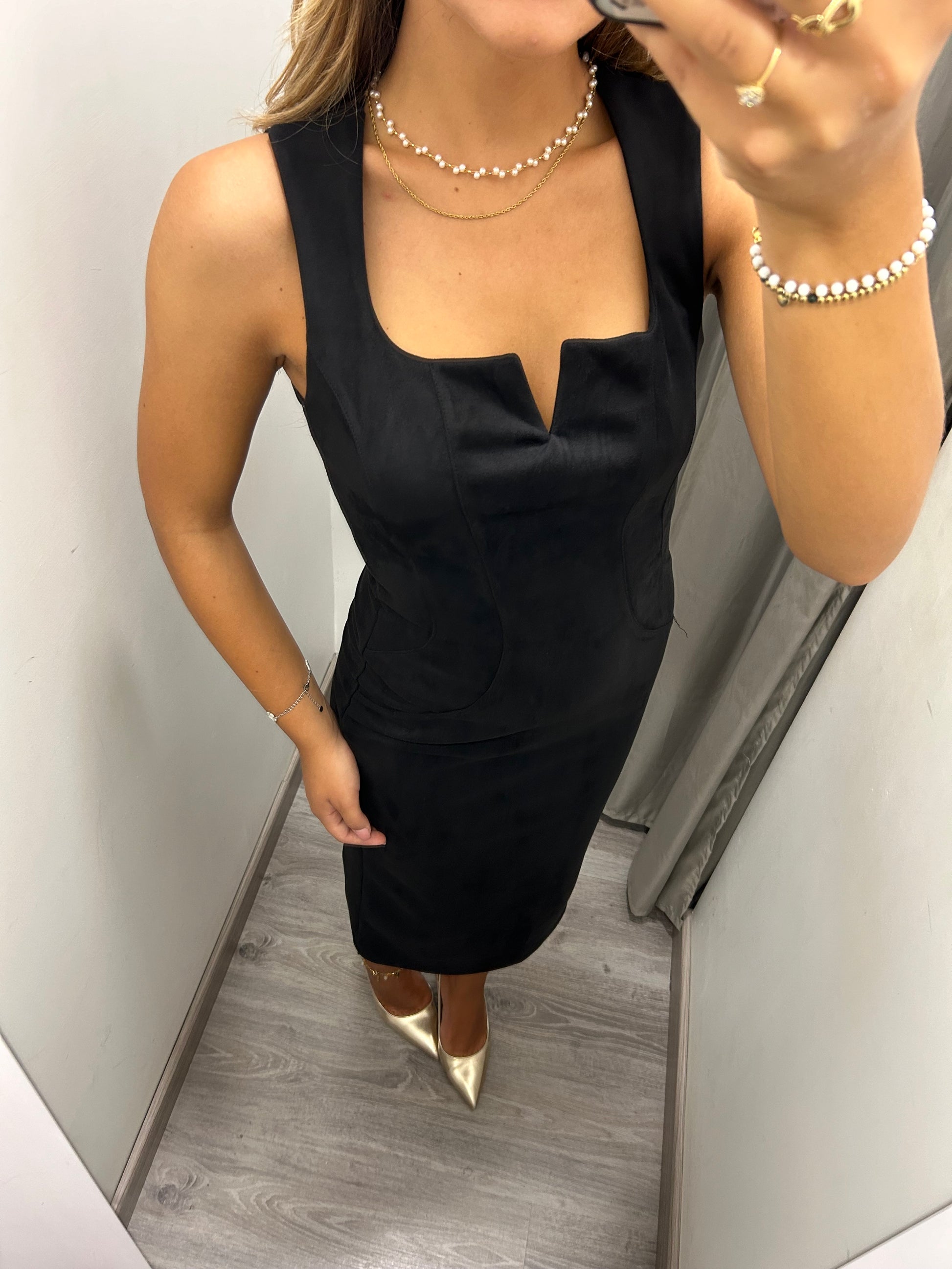 Tubino midi in velluto con zip sulla schiena. Taglia unica, veste fino alla L