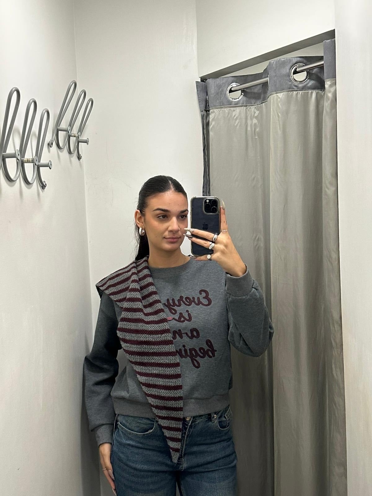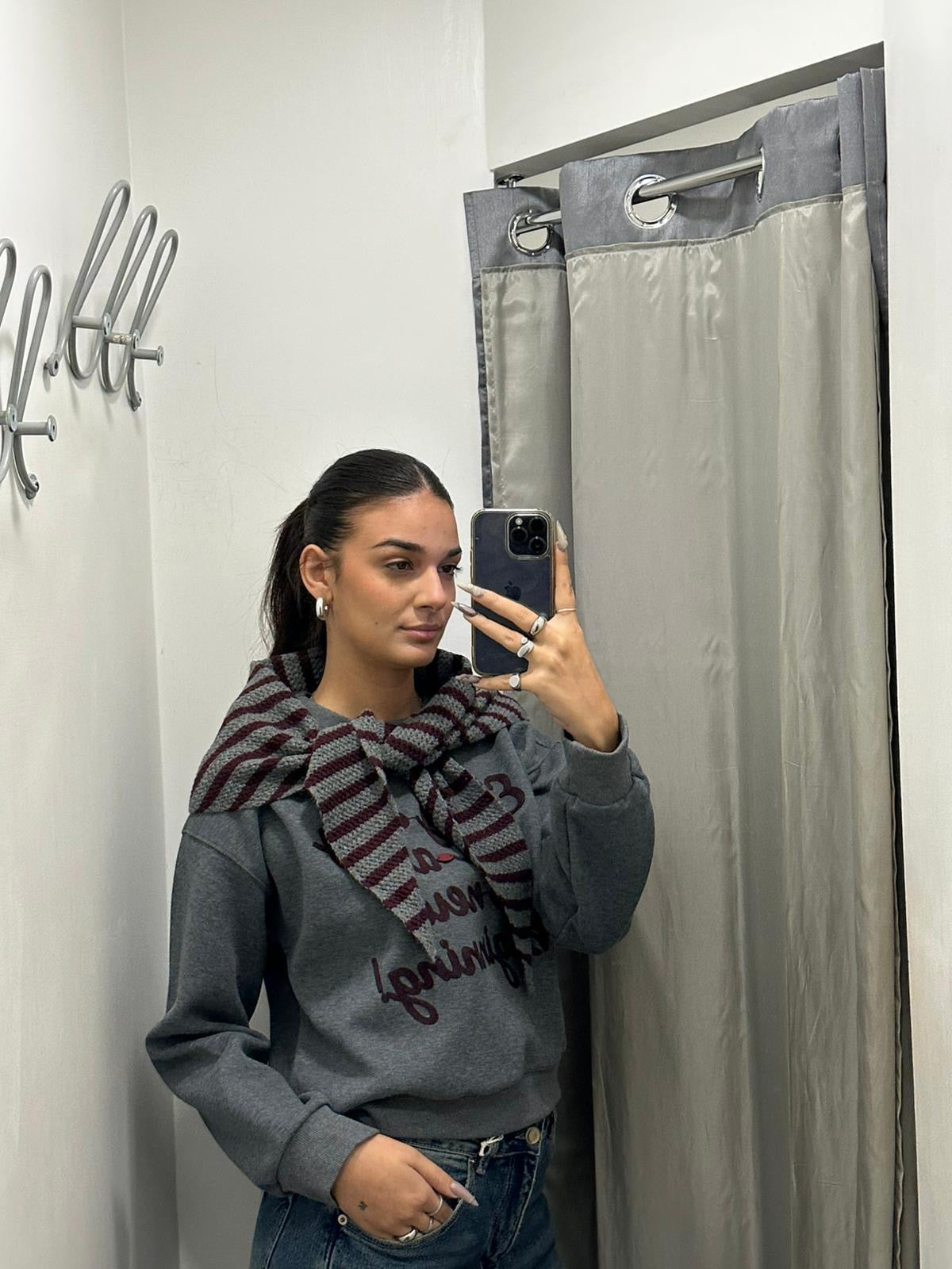 Felpa ragazza tinta unita con scritta sul davanti in rilievo con sciarpa coordinata . Taglia unica, veste dalla S alla XL