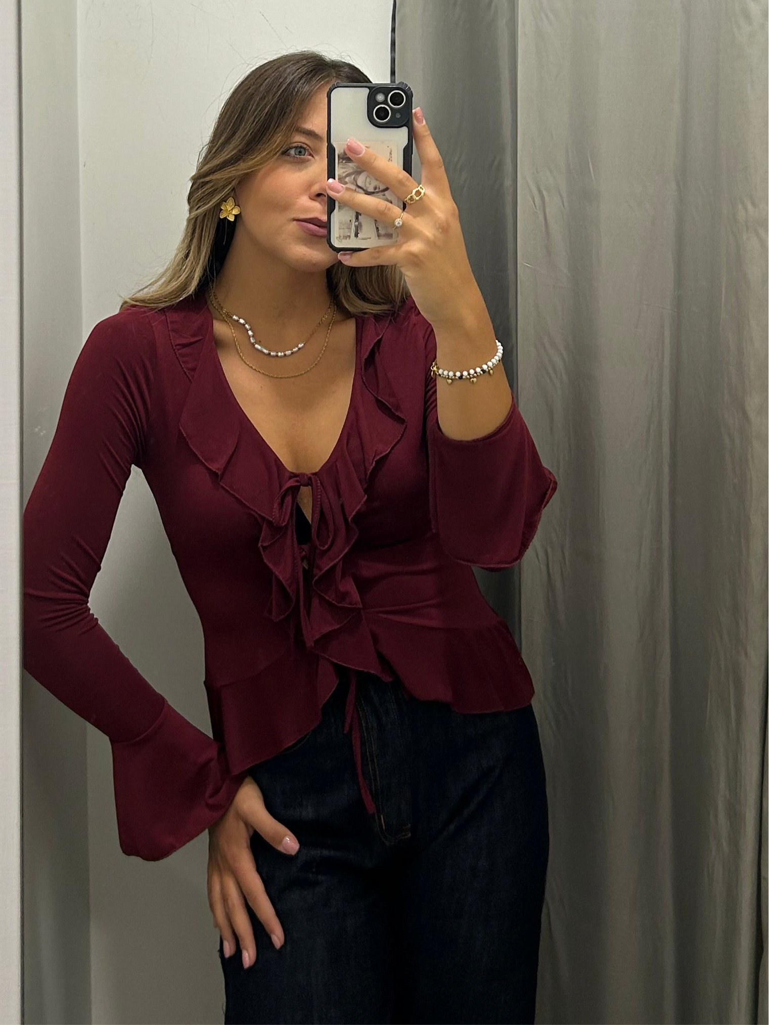 Maglia in lycra aperta con laccetti e volants . Taglia unica veste fino alla L