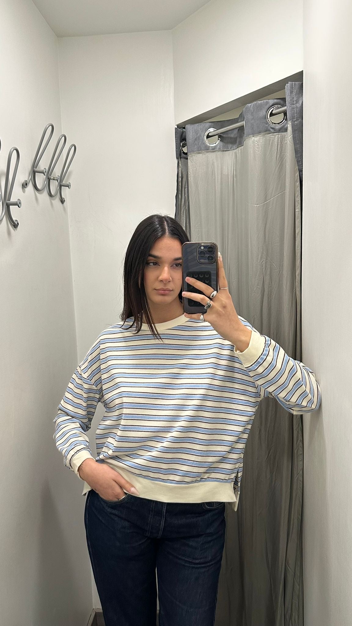 Maglia in cotone rigato manica lunga, ottima vestibilità . Dalla S alla XL