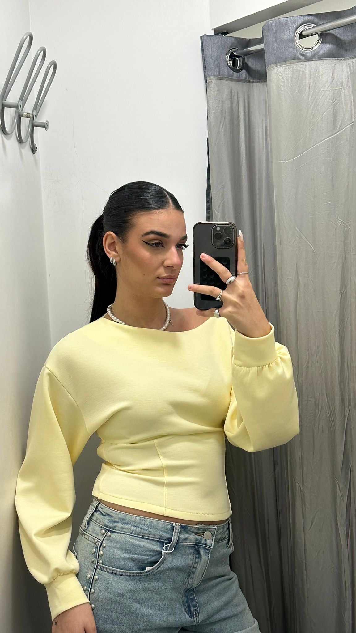 Maglia donna crop manica lunga, con apertura dietro