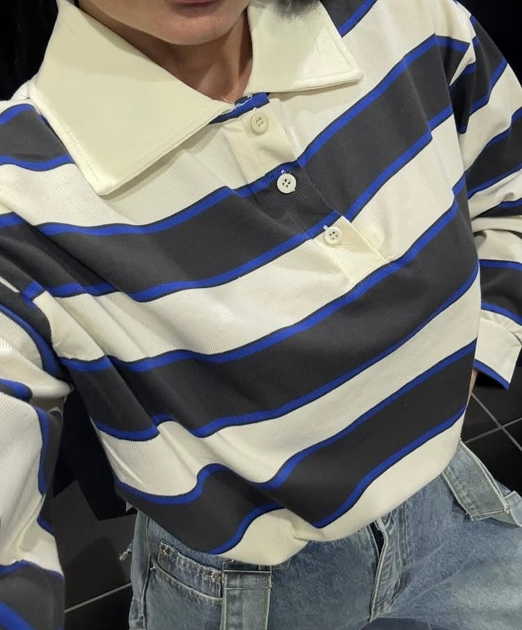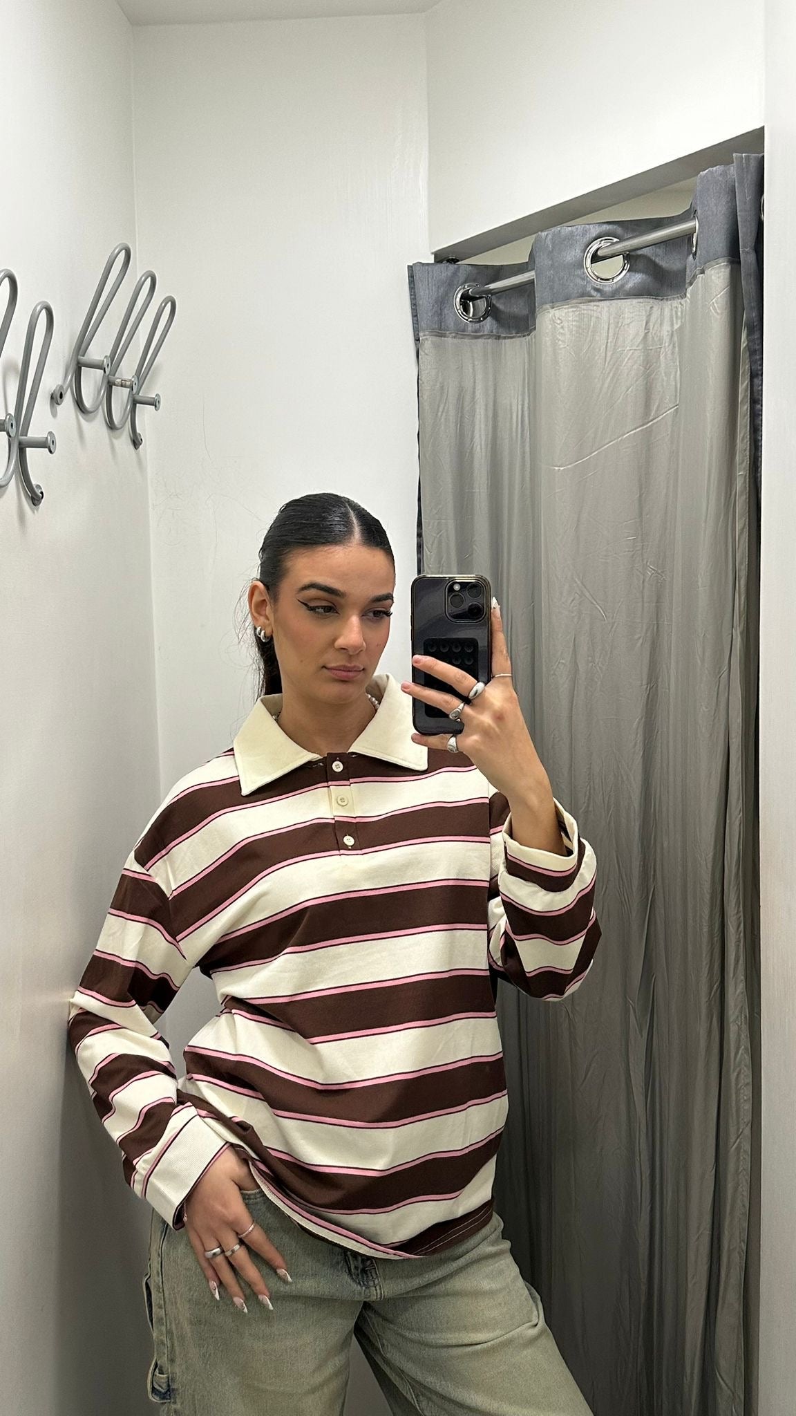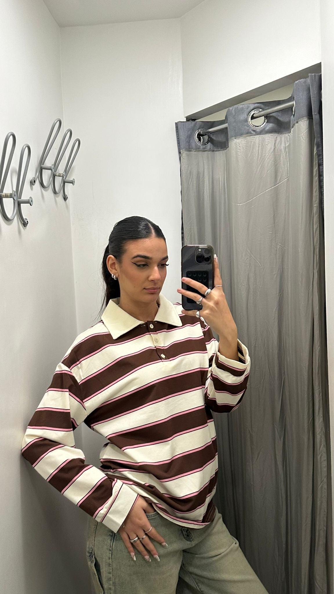 Polo donna in cotone rigato a fasce larghe. Taglia unica, veste dalla S alla XL