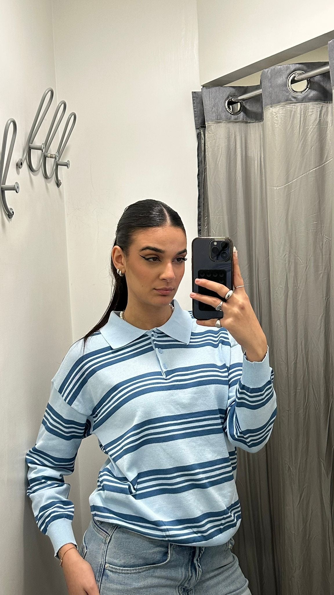 Polo donna in filo rigato, taglia unica. Veste fino alla XL