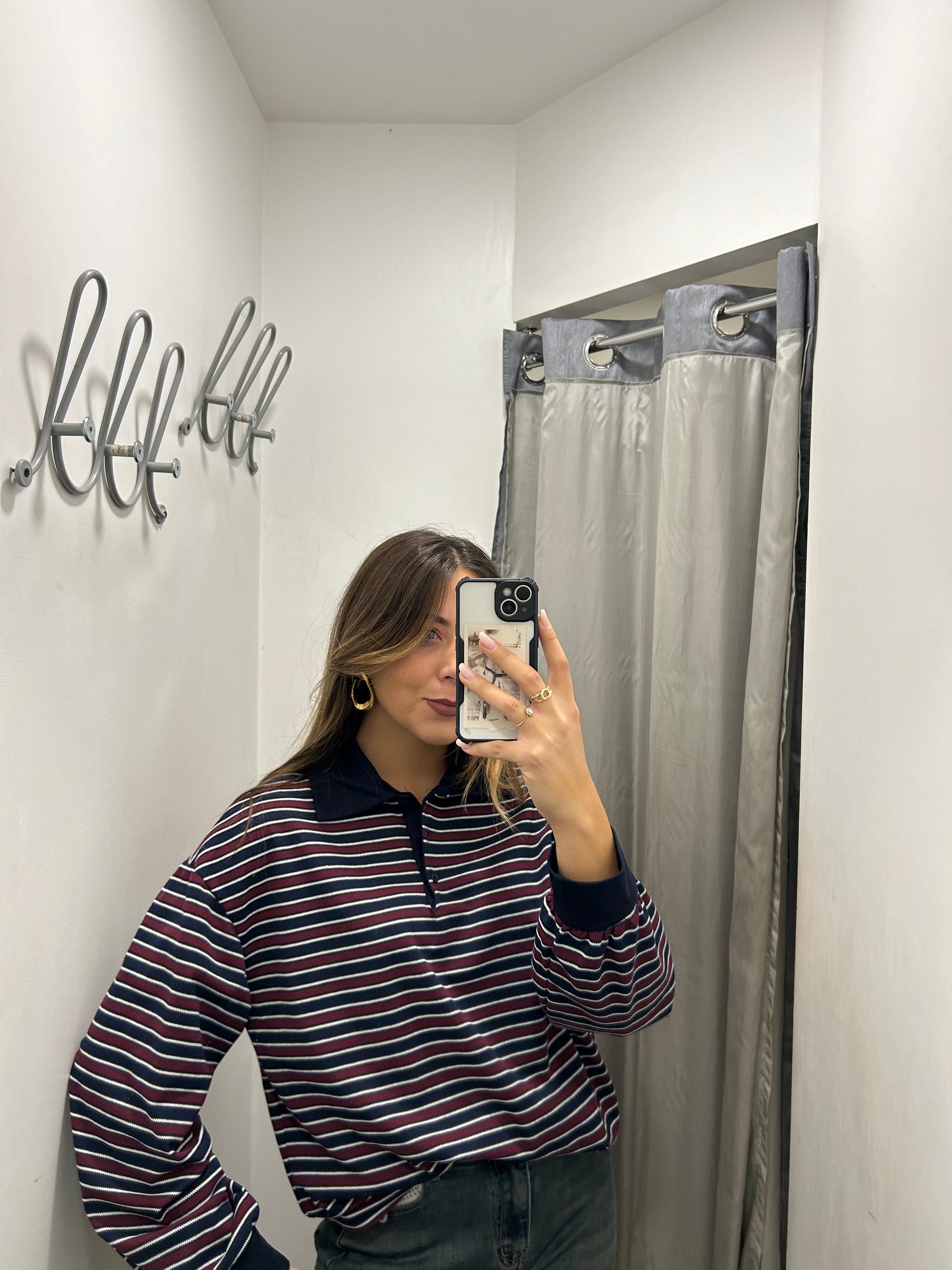 Polo donna rigata in cotone manica lunga. Veste dalla S alla XXL