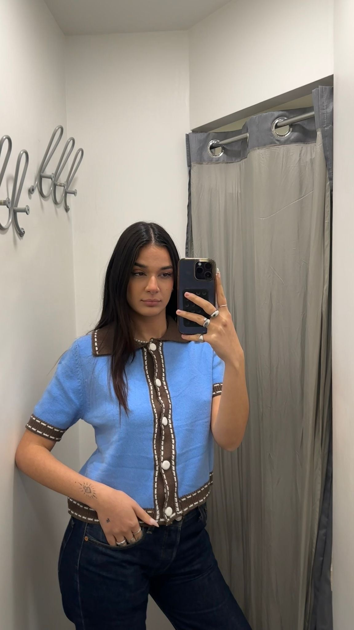Polo donna con profilo a contrasto aperta sul davanti. Taglia unica