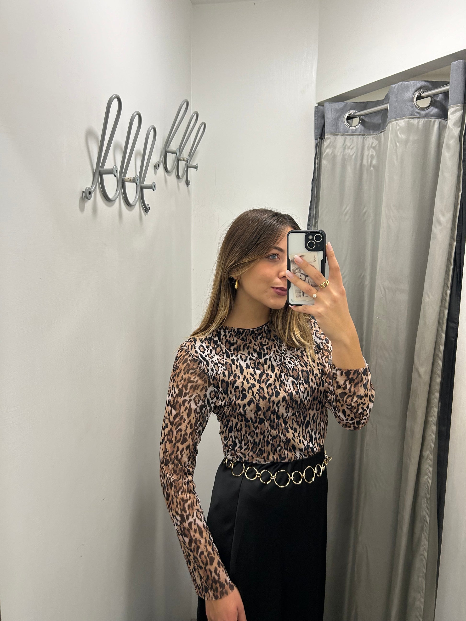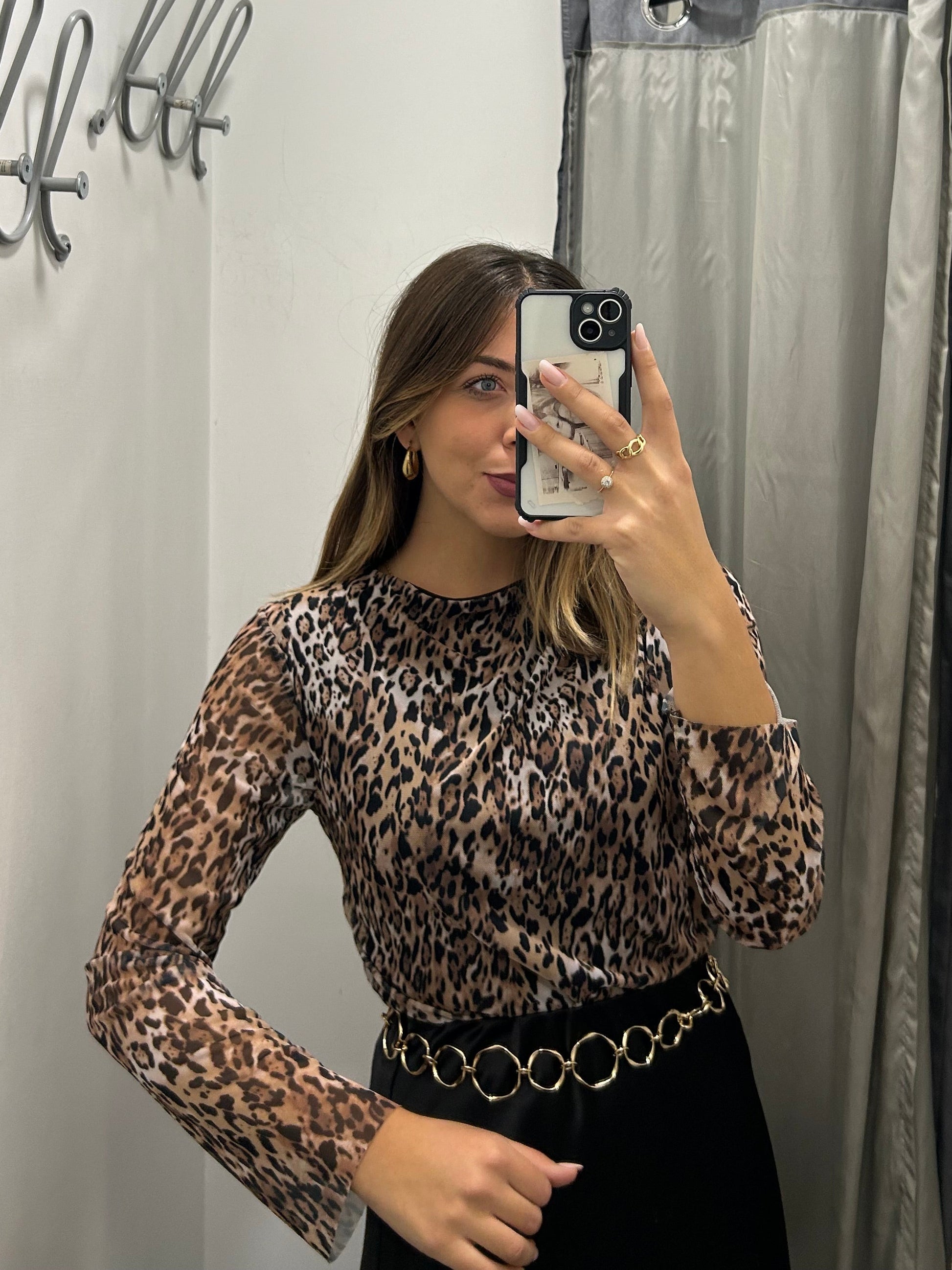 Maglia sottogiacca leopardata, top quality, foderata e solo maniche morbide velate.