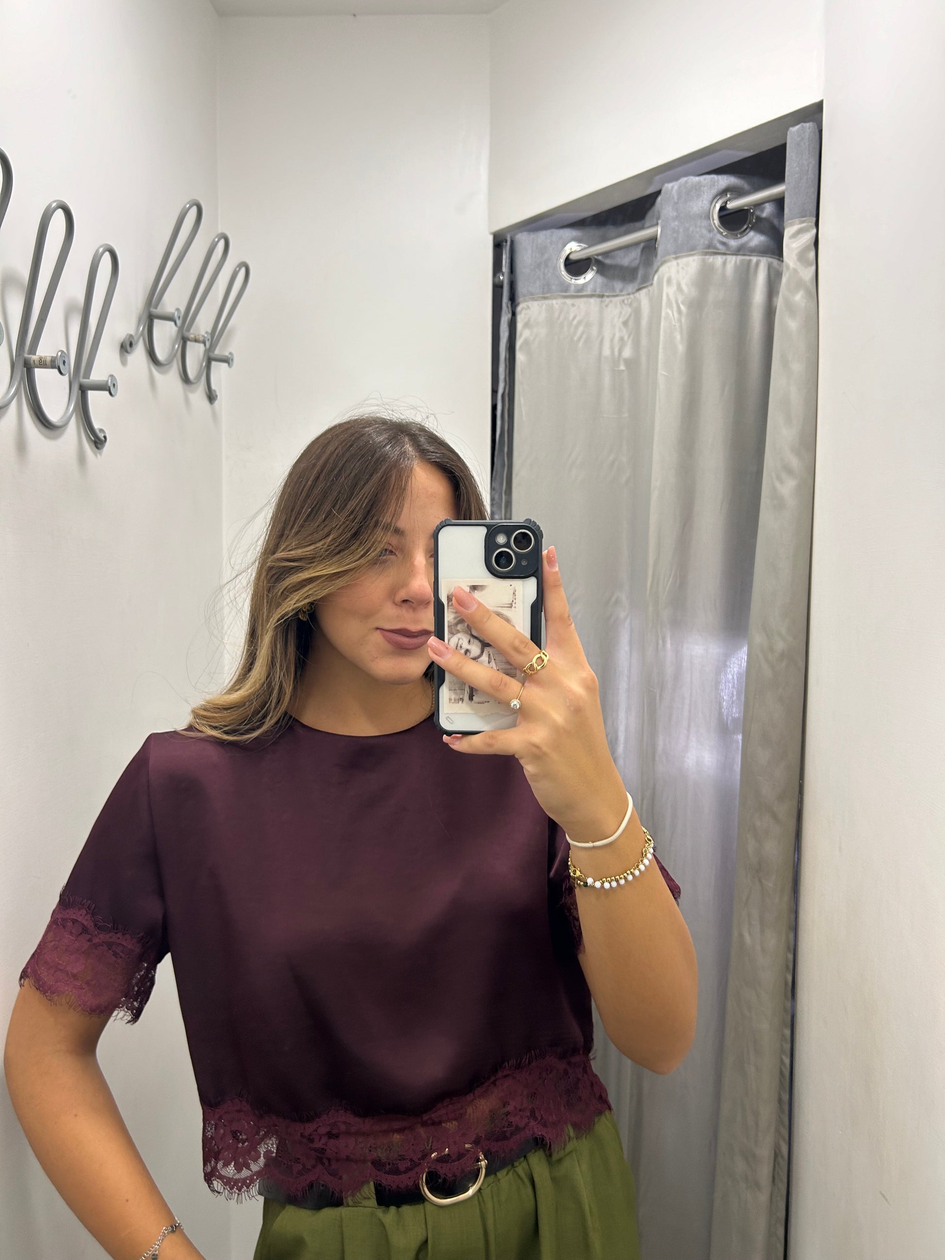 Shirt in raso e pizzo. Taglia unica