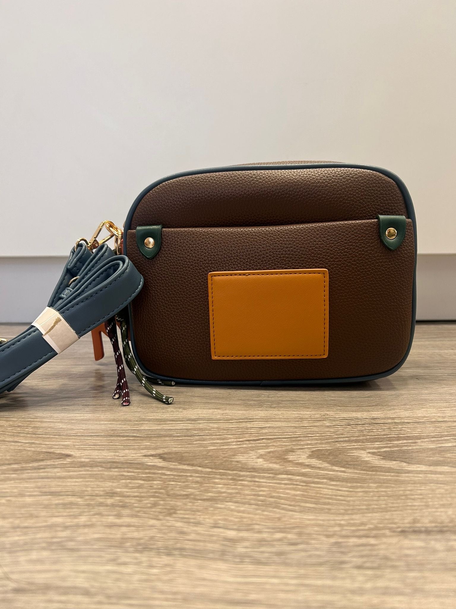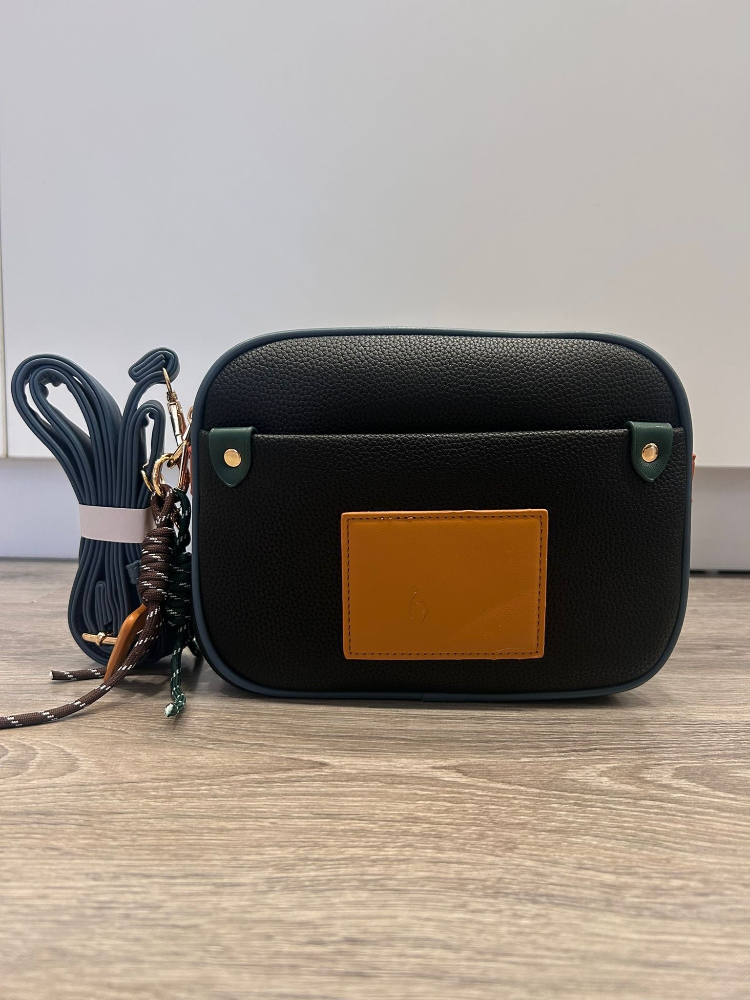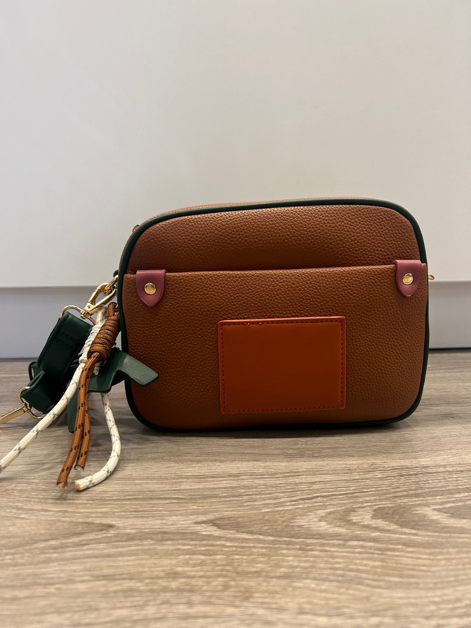 Comoda borsa multicolor con tracolla regolabile e tasche sul davanti . Firmata COVERI
