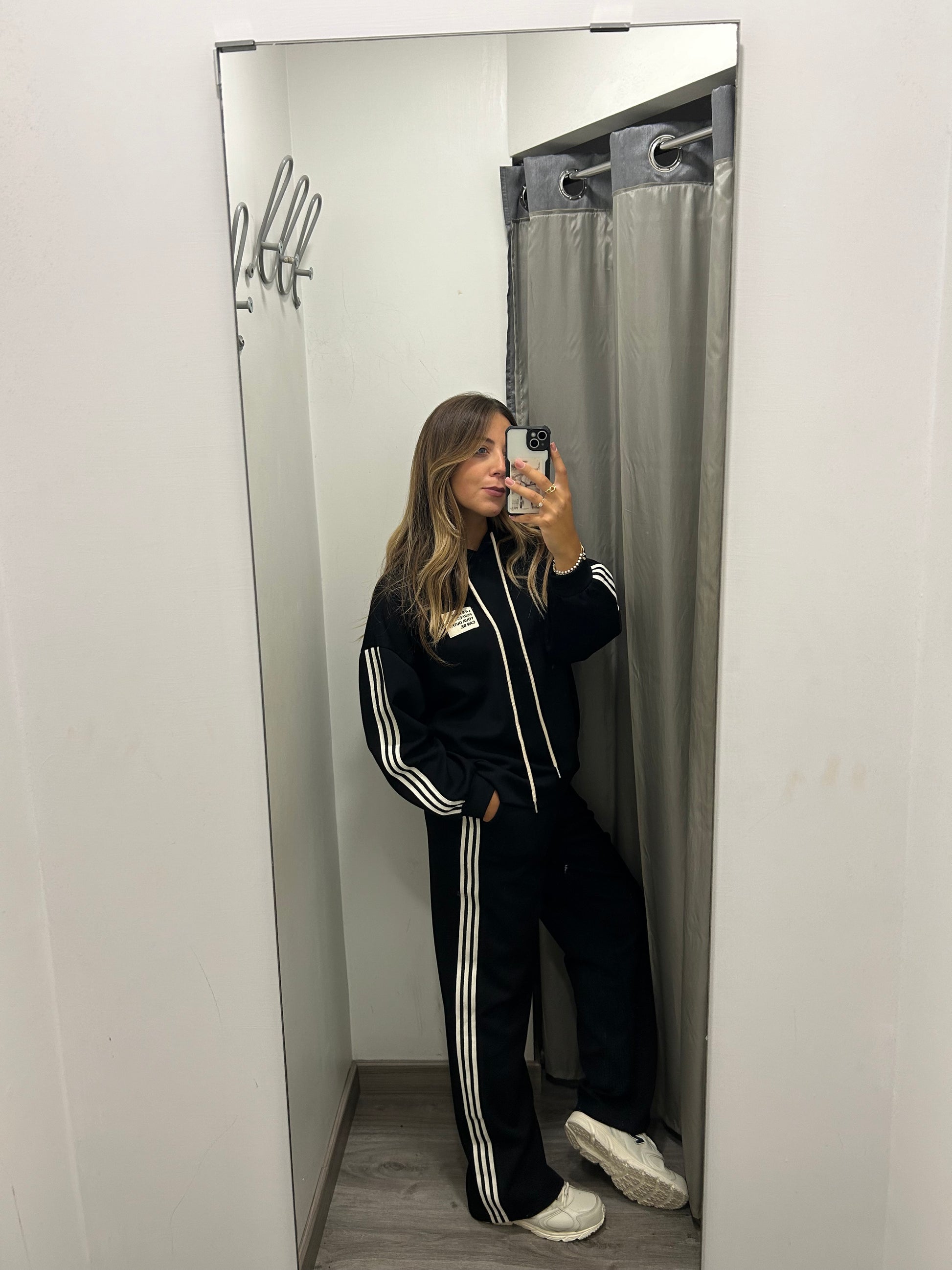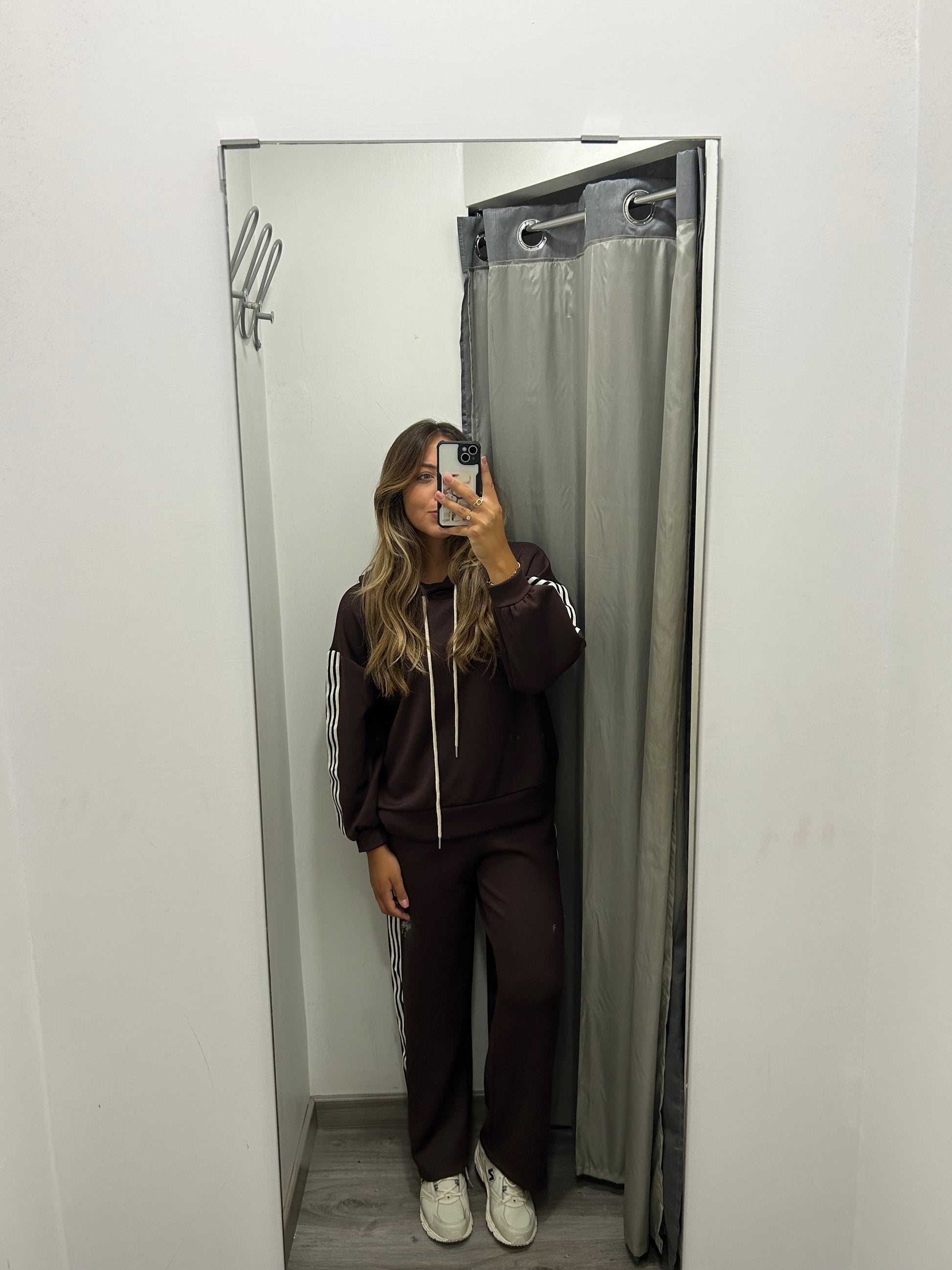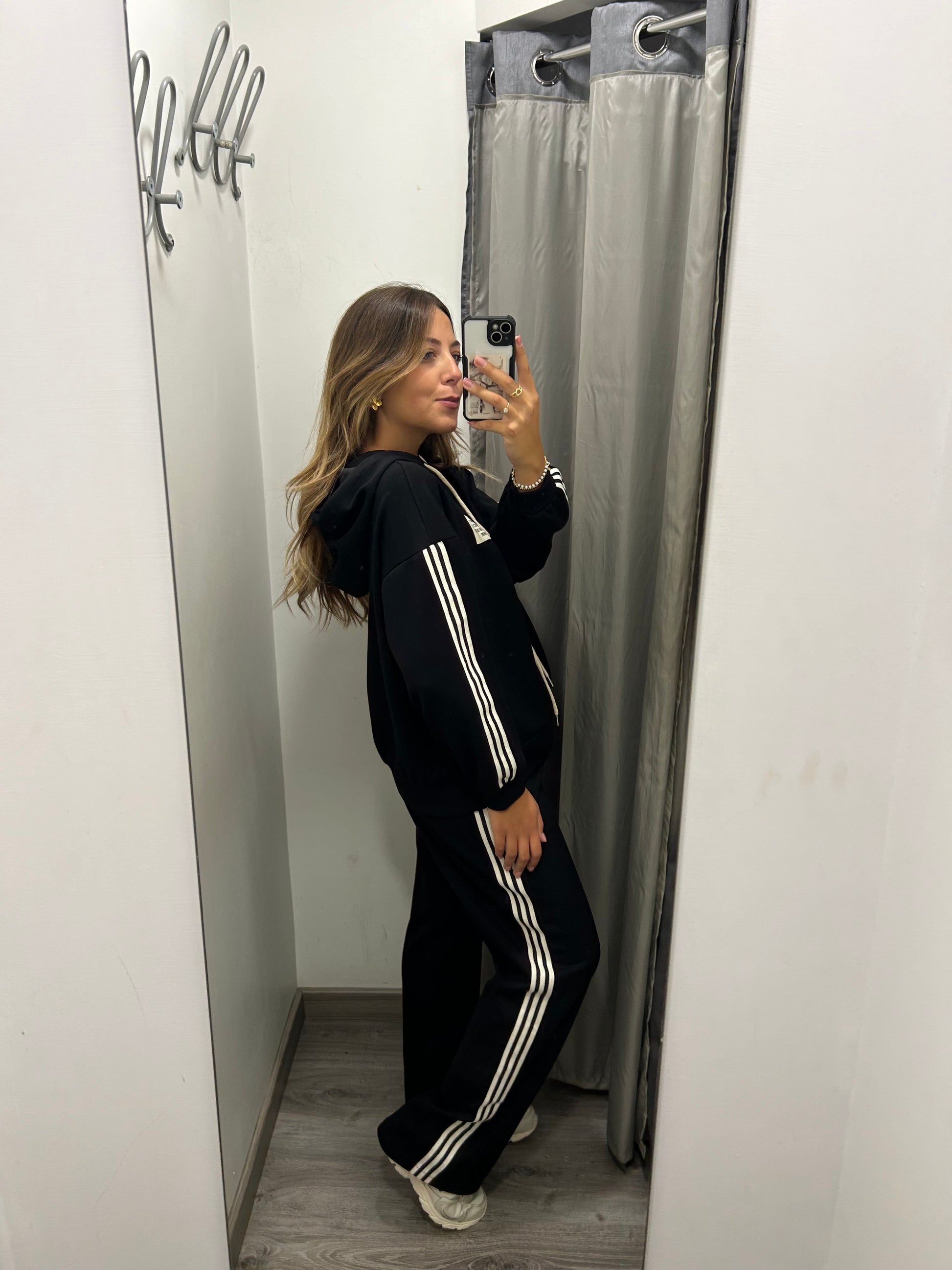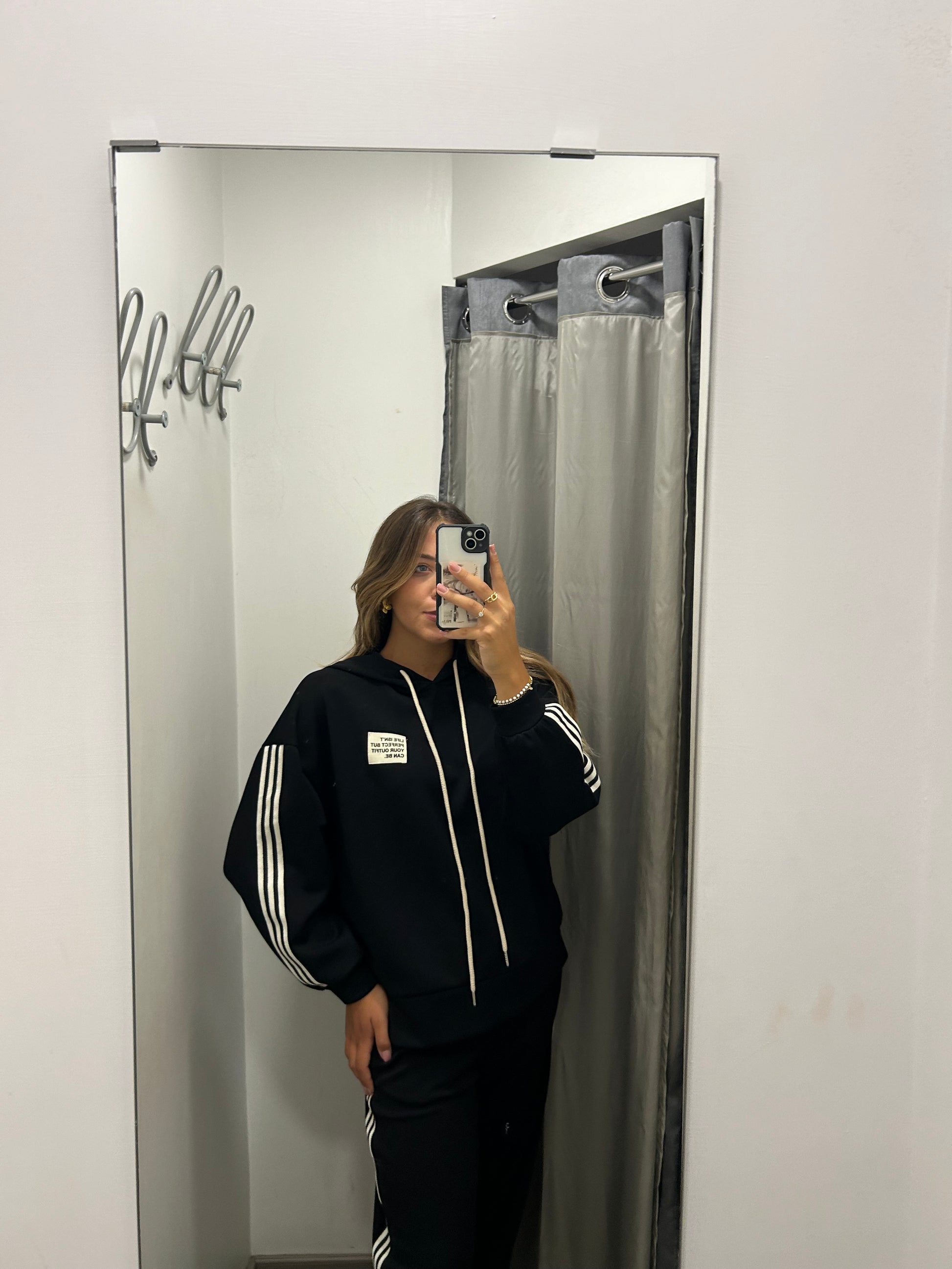 Set felpa con cappuccio e pantalone dritto largo. Taglia unica, veste dalla XS alla XL